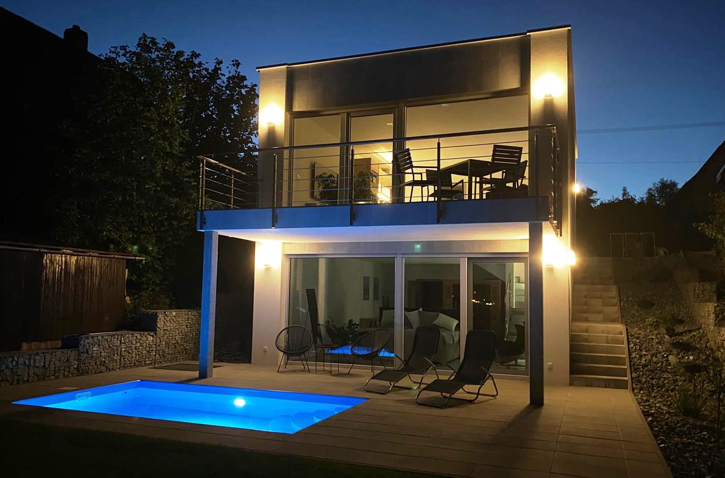 Podařilo se nám pozemek získat v aukci. Původní chata ustoupila nové stavbě – moderní vile, kterou jsme navrhli s pomocí skvělého projektanta a postavili přesně podle našich představ. O dva roky později tak vznikl prostor, který dnes otevíráme i vám.